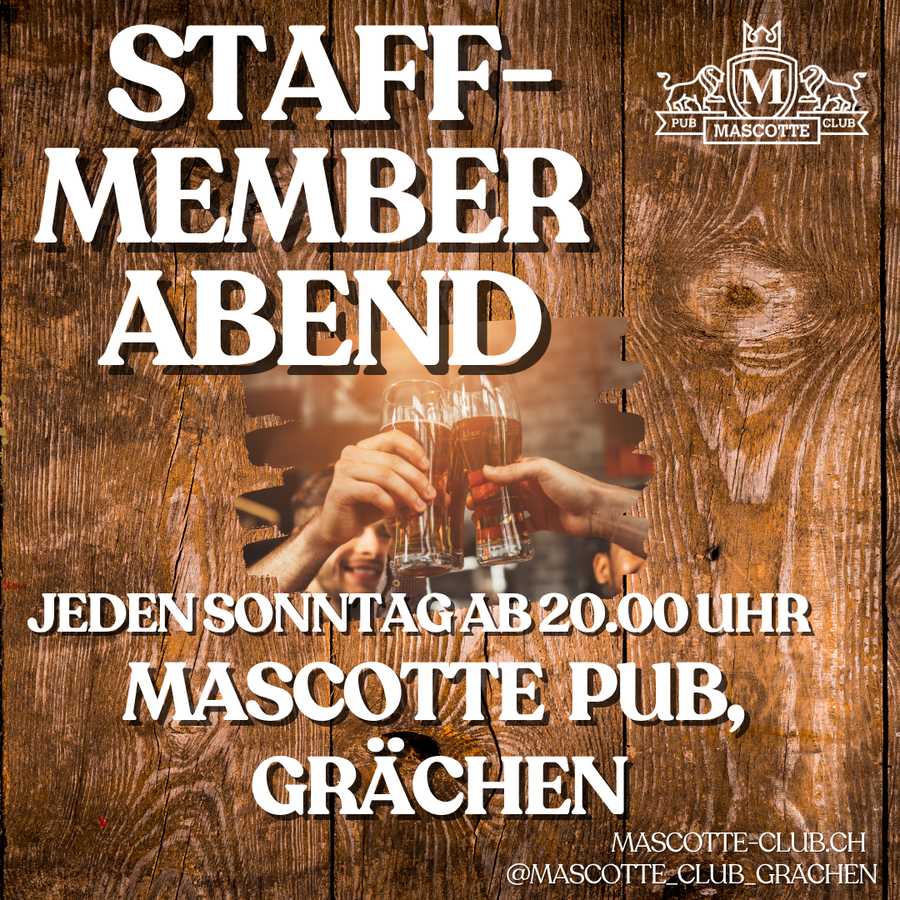 Staff- & Member-Abend – jeden Sonntagabend (Weihnachten–Ostern) im Mascotte Pub