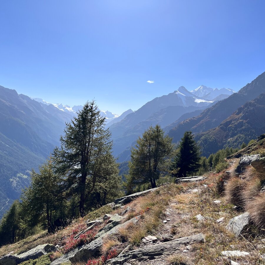 Startet euren aussichtsreichen Rundweg von der Jungenalp und folgt dem Pfad Richtung Moosalp. Ihr wandert etwa einen halben Kilometer durch den Wald und entlang der Felswand bis ihr links dem Pfad bergauf folgt. Hier wird es mit zunehmender Höhe steiniger und die Vegetation wird karger. Den höchsten Punkt eurer Tour erreicht ihr bei etwa 2360 m. ü. M.. Ab da führt euch der Pfad schlängelnd bergab zurück zur Jungenalp.