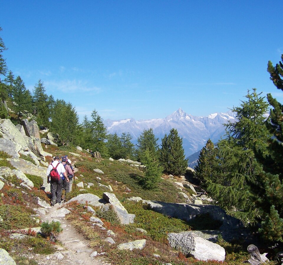 Nach einem etwa 45-minütigen Fussmarsch erreicht ihr den Aussichtspunkt Furggen. Gämse und Steinböcke verweilen hier gerne. Oben angekommen geniesst ihr die atemberaubende Bergwelt mit Blick auf Weissmies, Laggin-, Fletsch-, Balfrin- oder Bietschhorn und in die darunterliegenden Täler.