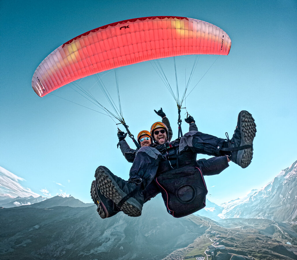 Flieg mit den Steinadlern und erlebe die imposante Bergwelt aus der Vogelperspektive. Heb mit Tandemflights ab, fühl dich frei, geniesse den Flug und die atemberaubende Perspektive.