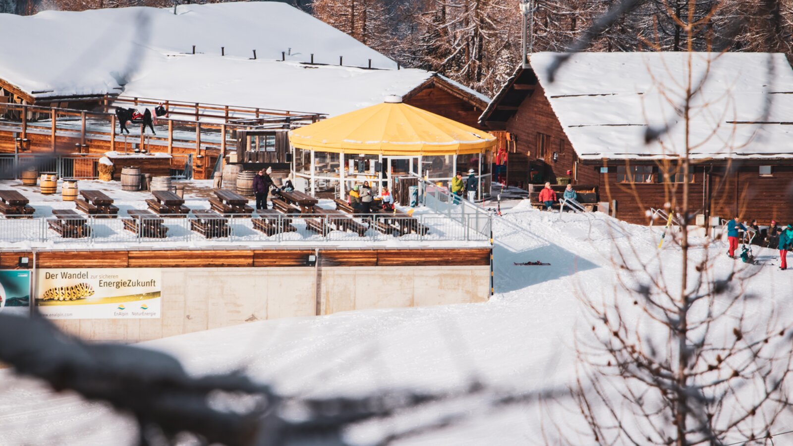 Ausgelassene Stimmung mitten auf der Hannigalp: In der gemütlichen Schnööbar lasst ihr den gelungenen Wintersporttag beim Après-Ski stilecht ausklingen. Ihr gönnt euch fancy Drinks und groovt dabei zum coolen Sound der Anlage.
