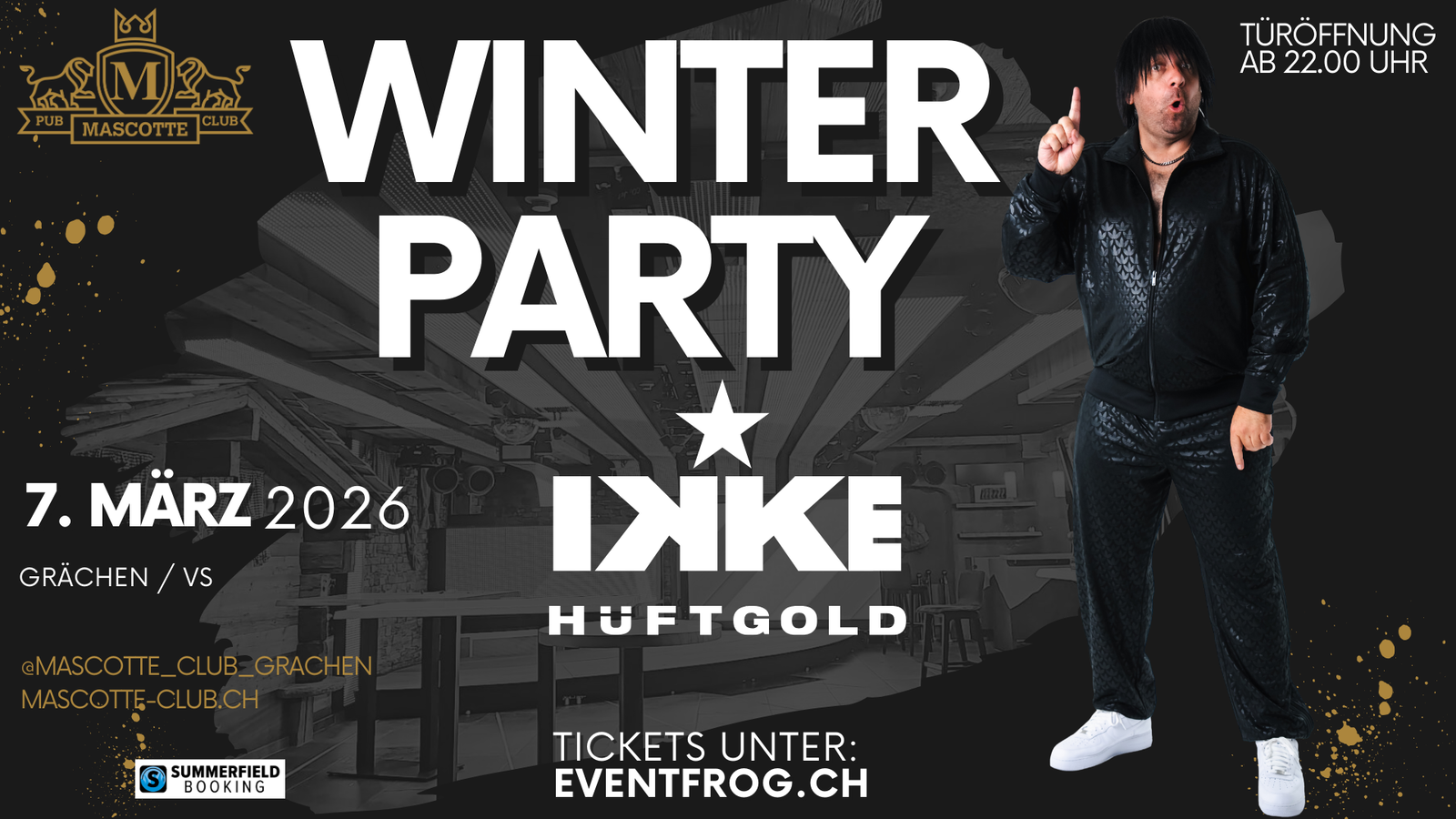 On Saturday, March 7, 2026, the Mascotte Grächen will become the ultimate winter party zone. It will feature none other than IKKE Hüftgold - one of the best-known and most successful party acts from the German-speaking world.