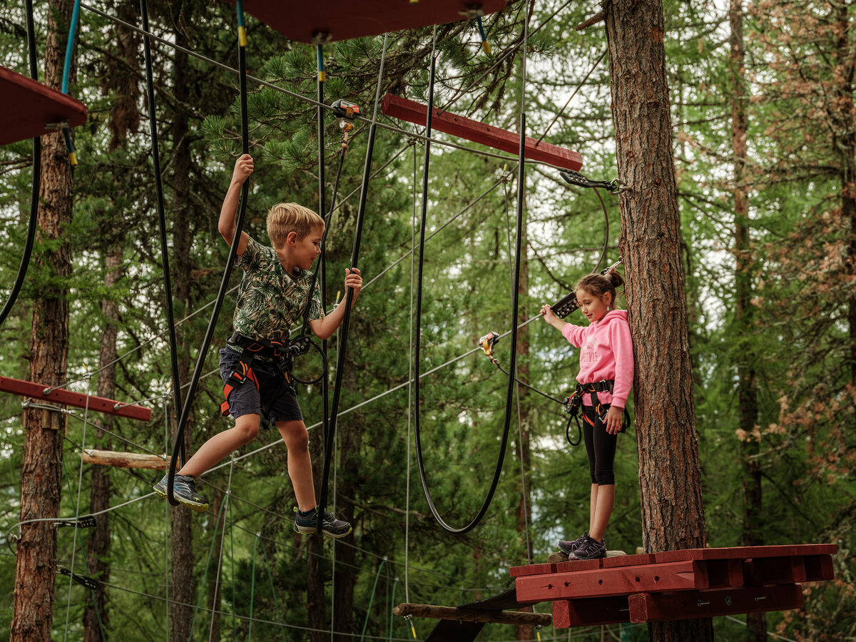 The most beautiful views you’ll have from the top: From June to October, you can experience a very special adventure in Robi’s Forest Play Park. Amid the fragrant larch forest, the high-ropes course offers exciting and varied routes several metres above the ground. Young daredevils are guaranteed to experience unforgettable adventures here!