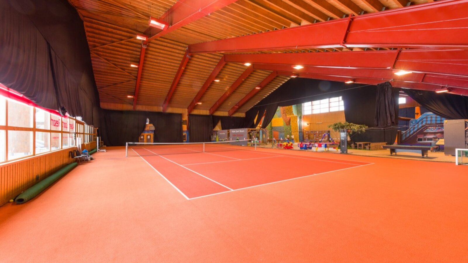 A permanently installed tennis court is waiting for you to play on it. Whether you want to practise your first serve or play exciting rallies, you will find the perfect environment for your game here. And if you prefer something a little faster, up to three badminton courts can also be set up.