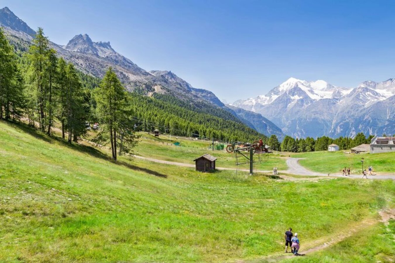 With a view of the fantastic mountain scenery, you start your route from Hannigalp heading downhill towards the Paradiesli ski lift and walk right through the refreshing larch forest. After about 500 meters of altitude lost downhill, you reach the Hohtschuggen restaurant and viewpoint. The return route takes you from the forest path over a gravel path past the valley station of the Bärgji lift onto a paved road that leads you past the chapel at Egga back to the village.