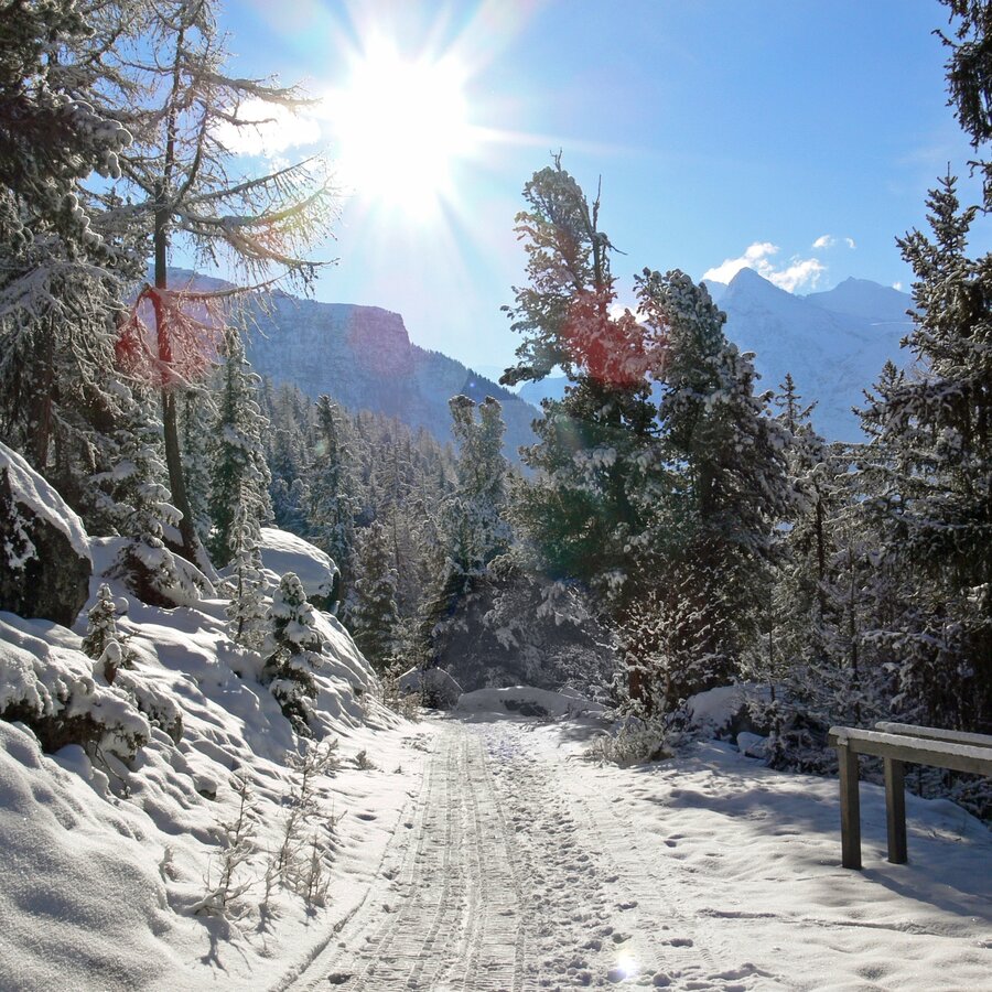 This leisurely hike leads through the car-free part of the village and further through the idyllic Grächen winter forest. You follow the signage along the Bineri irrigation channel to Gasenried and then on to Schalbetten.