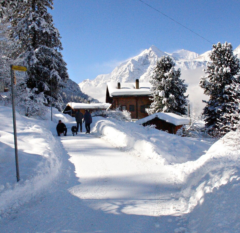 The ascending footpath takes you past the village square at the sports center. Follow the paved road to the lake. Then continue to Alpe Äbnet, cross the ski slope and follow the signs through the winter forest slightly downhill to Riti. Follow the signs to the chapel at Egga and then back to the village of Grächen on the road.