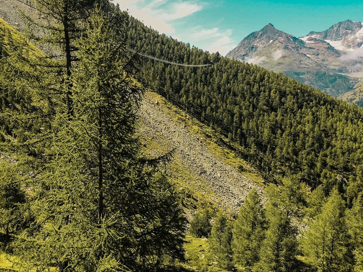 The breathtaking nature has been used by the officials of the communities St. Niklaus, Grächen, Randa, Täsch and Zermatt since 1997 to create the Europaweg. In 2021, the first stage from Grächen was redesigned and now leads with variety and spectacular views to the Europahütte above Randa. From there it goes over the suspension bridge, the longest pedestrian suspension bridge in the Alps, spanning the Grabengufer. It is 494 m long and at its highest point you hover 85 m above the abyss. Then it continues towards Täschalp and finally to Zermatt.