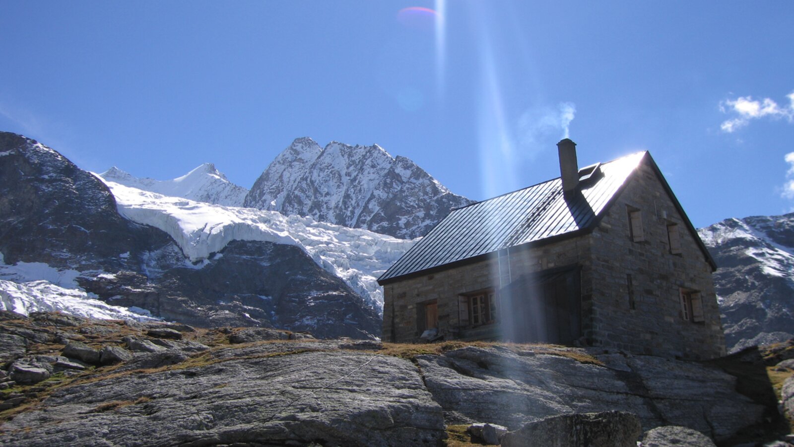 To get to Bordierhütte, you have to complete a demanding but very impressive high-alpine tour. You’ll hike from Grächen in the direction of Alpja. The path leads you through fragrant larch forests and the unique glacier foreland landscape. In spring, you can admire the magnificent alpine roses that grow along the trail. Important: You will also cross the glacier on this hike – so crampons are a must!