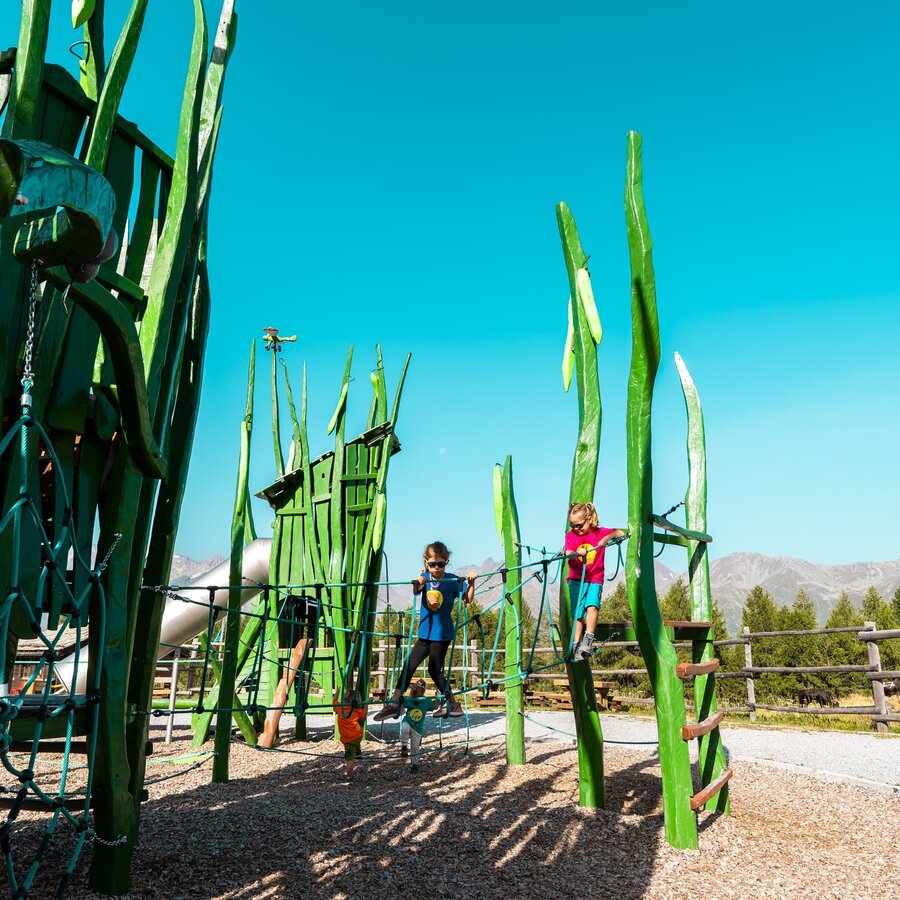A colourful children's wonderland with fun and lots of exercise. In the family park on the Hannigalp, the little ones learn to ski through play and make their first attempts in the glistening snow.