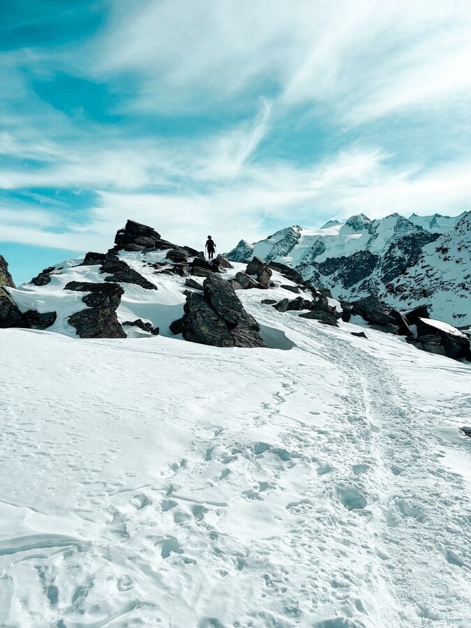 From the Wannihorn you can enjoy the beautiful view of the surrounding mountains, such as the Bishorn, Brunegghorn and the wonderful Weisshorn. In summer with hiking boots, in winter via the prepared snowshoe trail.