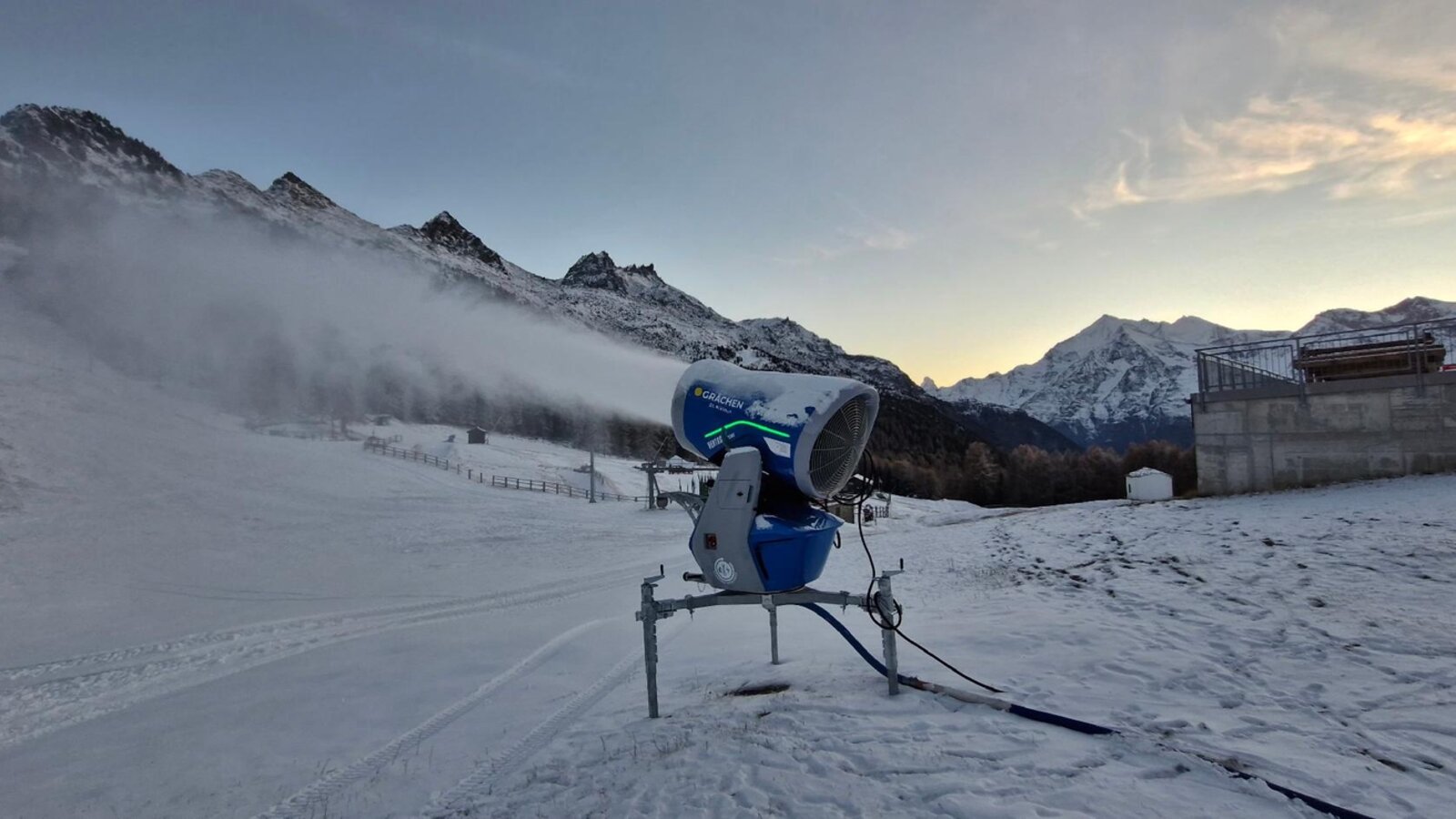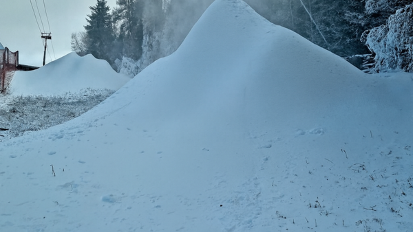 Around 150,000 cubic litres of water are available for this purpose throughout the winter season. The trick is to allocate this water sensibly. "We have defined a target for each slope. This is optimised from season to season. The less water used, the more electricity is saved. So far, around a quarter of the water has been used, but snow is also being produced 24 hours a day.
